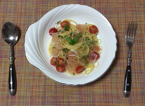 こんにちは、あらたのです。 最近冷製パスタにハマっています。 今回はトマトと生ハムメインのパスタを作りました。 入っているのはミニトマトと生ハム、スプラウト、バジルです。 生ハムはパックに入っている安いやつでも十分美味しくできました。 ミニトマ…